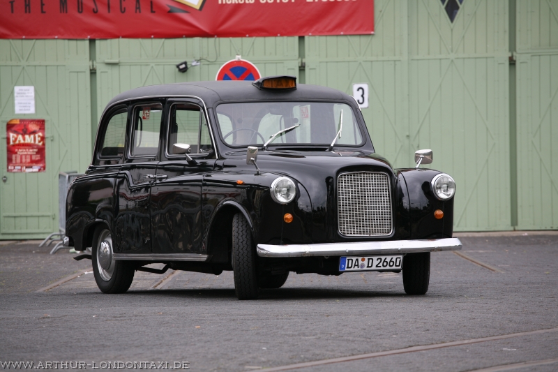 Arthur ist ein klassisches London Taxi vom Typ Austin FX4 – jenes kantige Arbeitstier, das ab 1958 die Straßen Londons prägte. Entwickelt wurde der FX4 gemeinsam von Austin und Carbodies (Karosserie), die Konzeption ging auf die Bedürfnisse des Londoner Taxigewerbes zurück (Stichwort „Conditions of Fitness“). Die ersten Wagen gingen 1958 in den Dienst, gebaut wurde die Baureihe in wechselnden Evolutionsstufen – zuletzt als „Fairway“ – bis 1997.