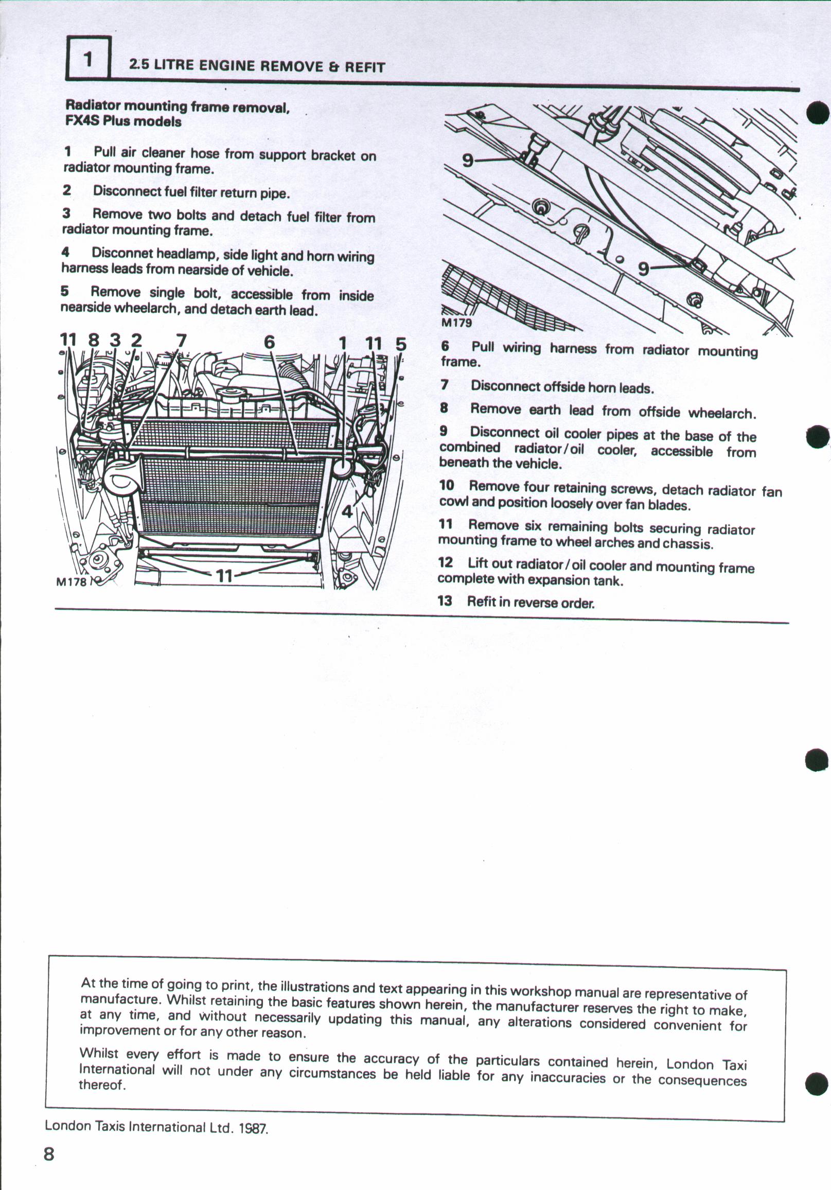 Das FX4S Workshop Manual ist das zentrale Werkstatthandbuch für die späten FX4S-Modelle. Es enthält Wartungspläne, Drehmomente und Schritt-für-Schritt-Anleitungen zu Motor (2.5D), Antrieb, Bremsen, Lenkung, Fahrwerk, Elektrik (inkl. Schaltplänen) sowie Karosserie und Innenraum.